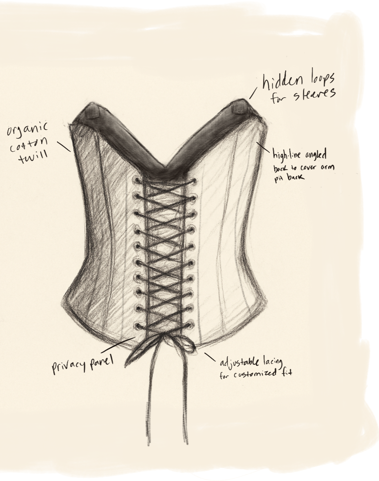 Organic cotton twill, hidden metal spiral boning that moves with you, and adjustable lacing create a truly sculpted silhouette. Locally made to order from all sustainable materials and constructed with heirloom quality corsetry craftsmanship, this piece will be your go-to for elevated evenings and refined celebrations.